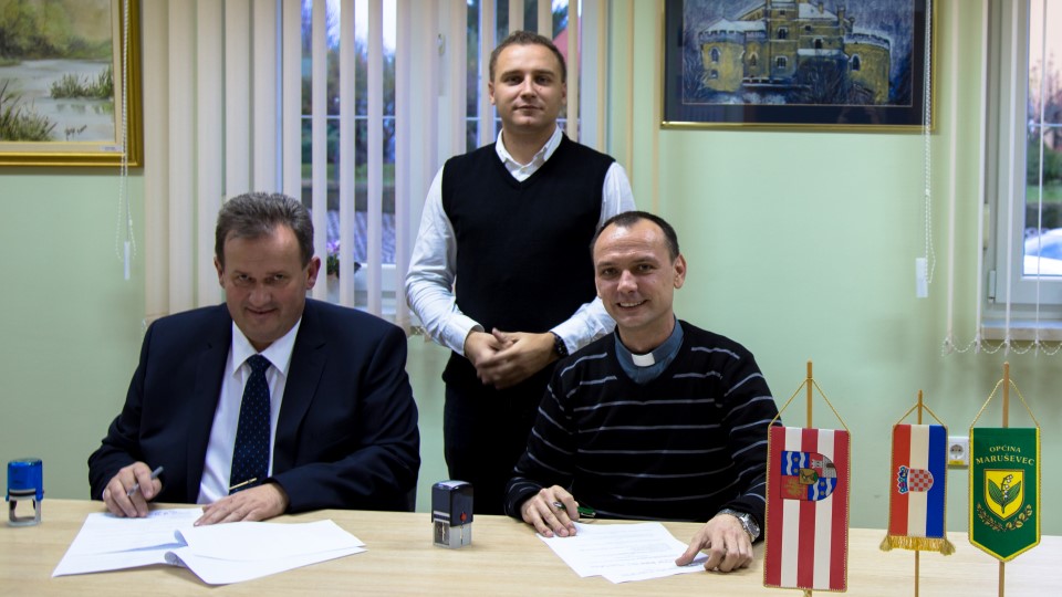 Maruševec, 11. studenoga 2017. godine – U prostorijama Općine Maruševec potpisan je ugovor između Općine Maruševec i Varaždinske biskupije o darivanju zemljišta za izgradnju Kulturnog centra Maruševec.