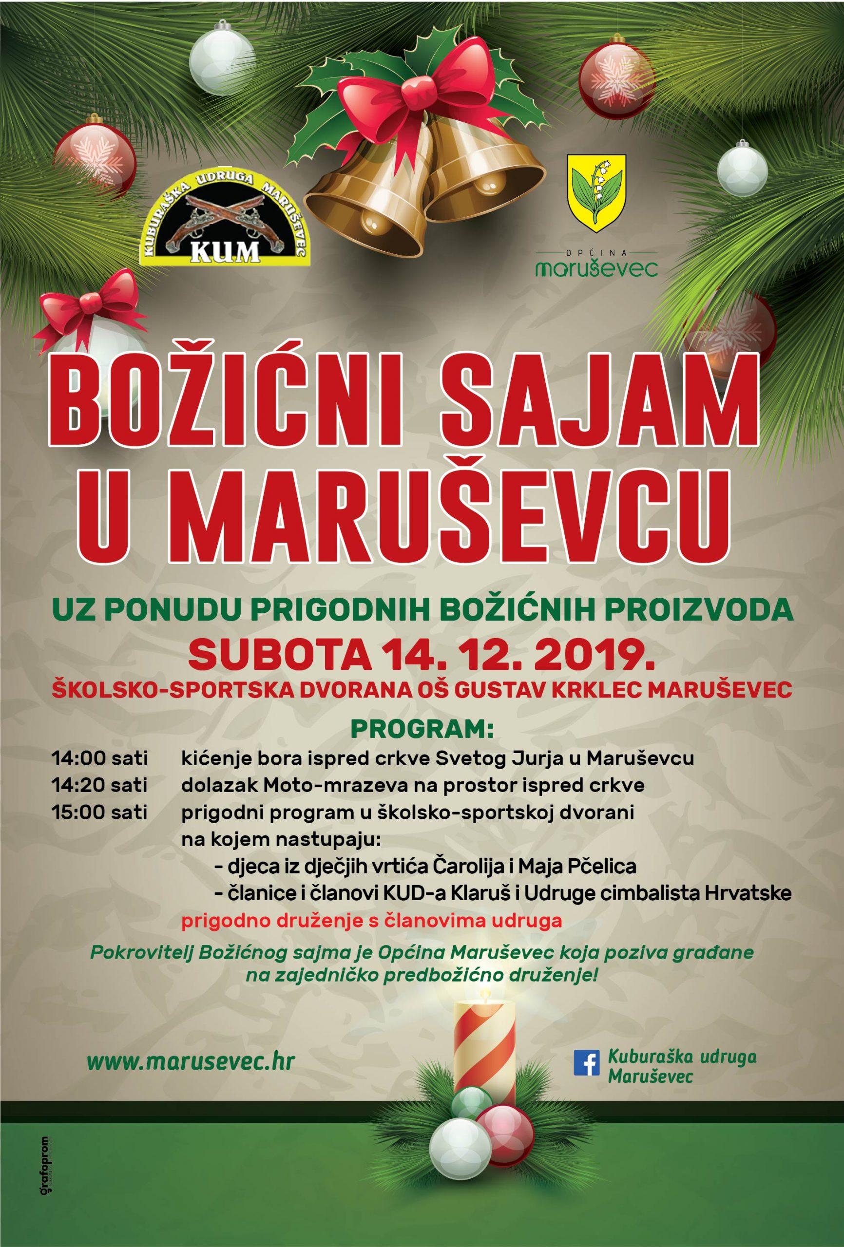 Pokrovitelj ovogodišnjeg Božićnog sajma je Općina Maruševec, koja poziva građane zajedničko predblagdansko druženje u subotu, 14. prosinca u školsko-sportsku dvoranu Osnovne škole Gustav Krklec Maruševec!